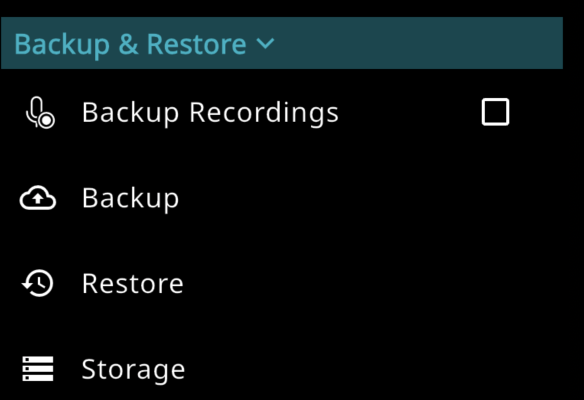 - Tap Backup. To restore, select a backup file and tap Restore.