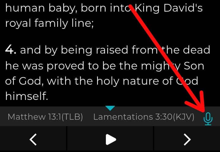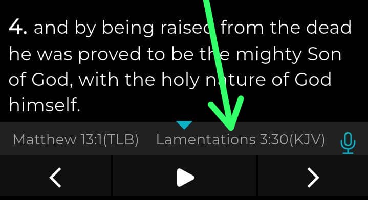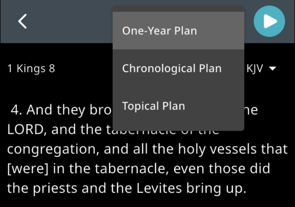 - To read selected verses only: select verses (long-press or tap selection mode) and tap Play Icon.
