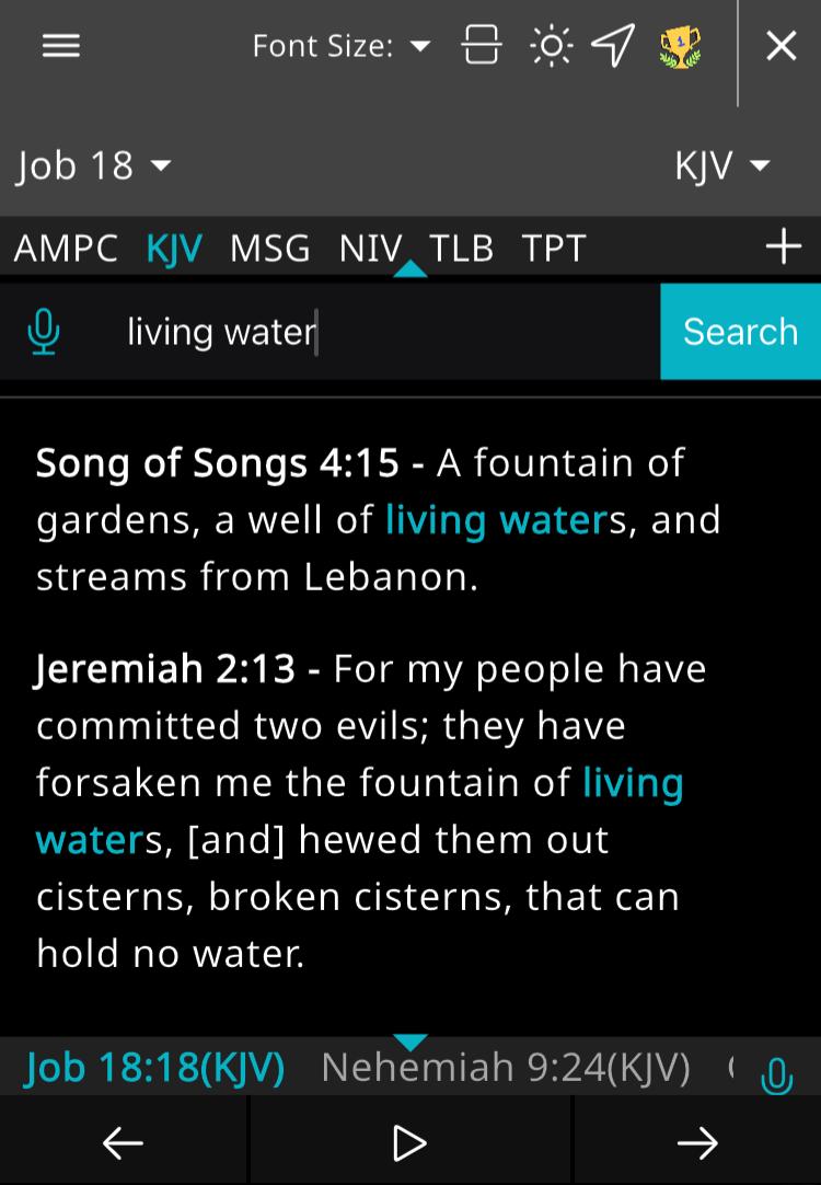 - Enter a scripture reference or topic (example: John 3 or Grace).