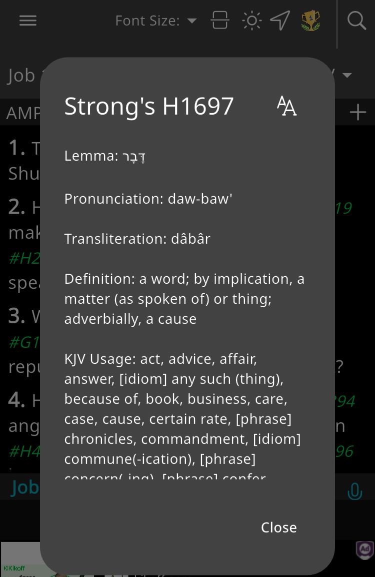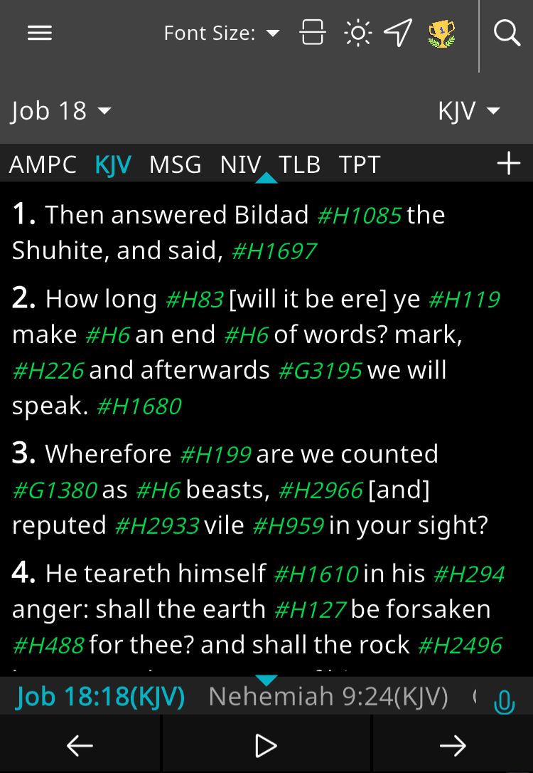 - Choose Bible with Strong’s to open definitions and lexical entries.