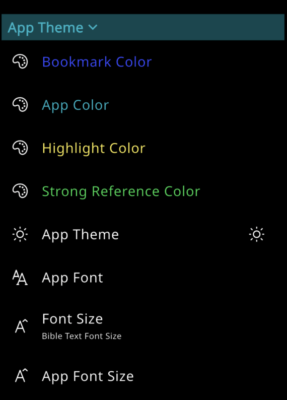 - App App Theme Icon to toggle betweek light/dark theme and select preferred font size.